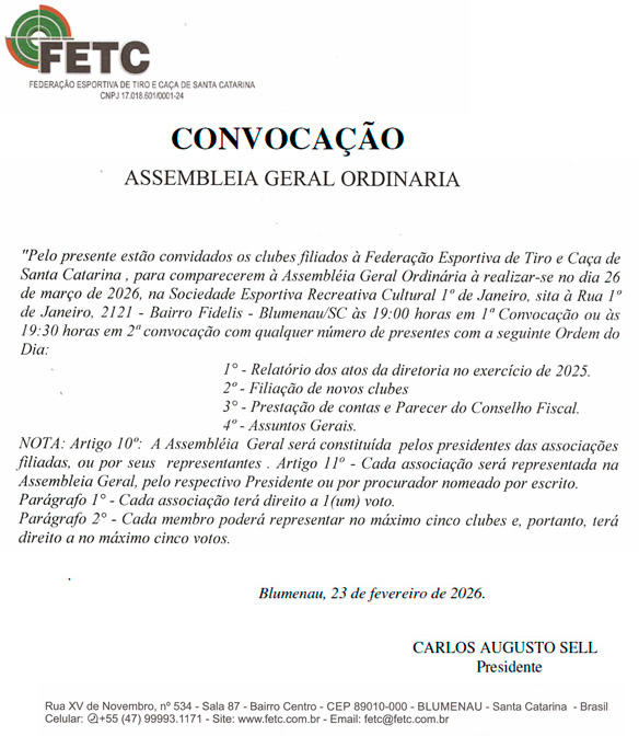 Em virtude de vários questionamentos feitos junto a Federação, seguem informações que devem ser observadas pelo clube, para mante-lo dentro das novas normas de Fiscalização do Exército.